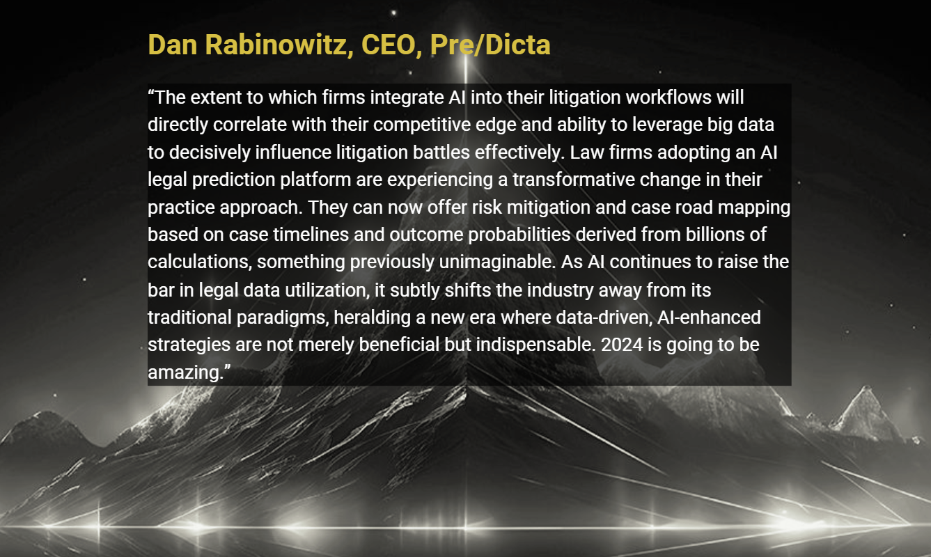 Today, we are excited to introduce Dan Rabinowitz, CEO and co-founder of Pre/Dicta, an innovative AI-powered litigation prediction software. Dan brings a wealth of experience to our discussion, with a background that spans from serving as a trial attorney at the U.S. Department of Justice to pivotal roles in data science and legal strategy.